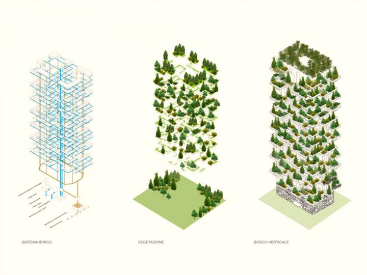 Pre nego što najbogatiji Milanezi prisvoje luksuzne stanove objekta koji je simbolično nazvan „Vertikalna šuma“ (Bosco Verticale), u njimu će se već nastaniti 900 stabala drveća visine između 3,6 i 9 metara, oko 11.000 niskog rastinja i 5.000 grmova. Tako će nova zvezda italijanske arhitekture postati prva “neboder-šuma” na svetu, ali i novi statusni simbol Milaneza, koji će za najjeftiniji kvadrat u zelenim kulama plaćati 3.000 evra.